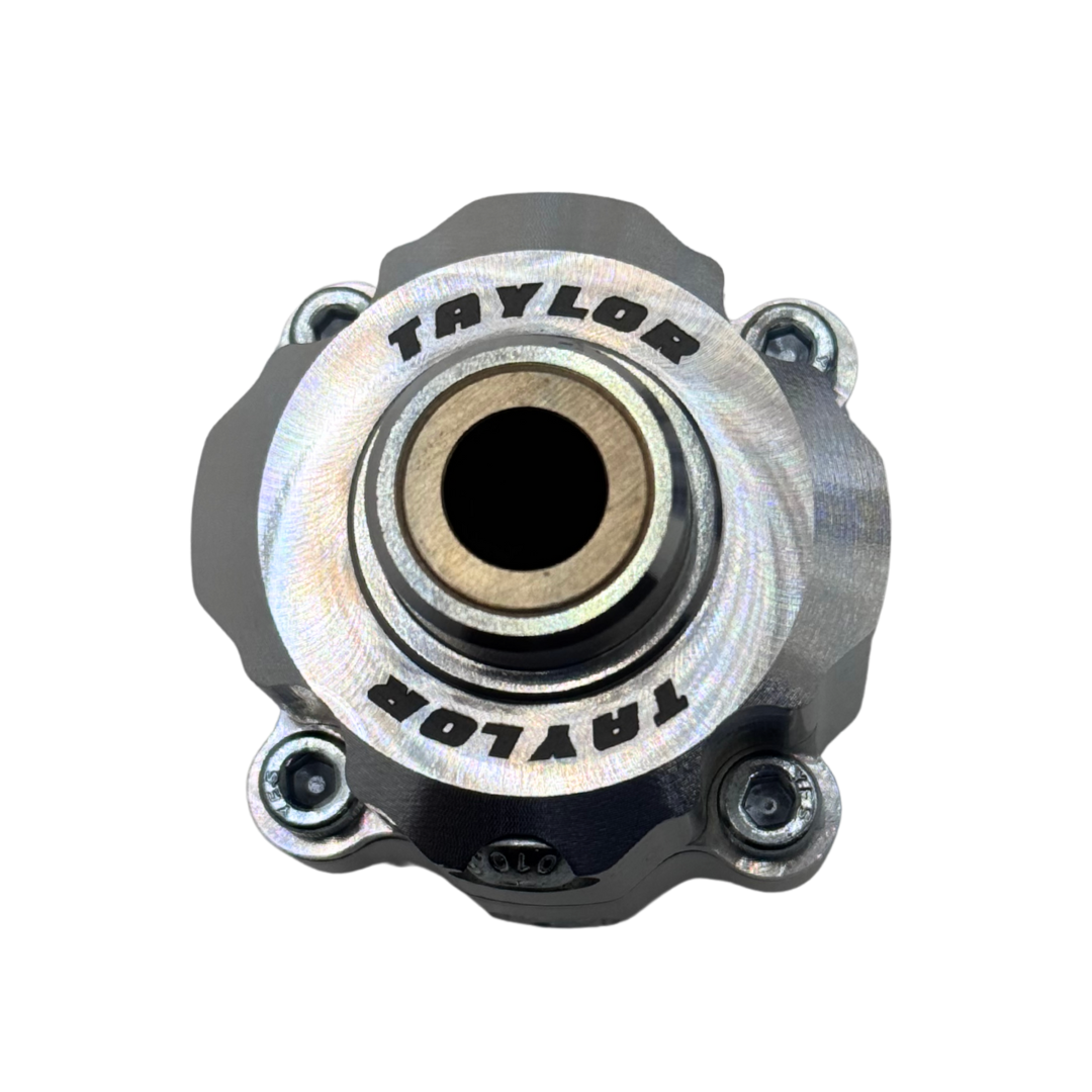 Metallic gear component with 'Taylor' branding on a white background