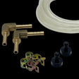 We wanted to bring you the most complete fuel line kit to upgrade your 1/5 scale vehicle. We start out with 2 feet of High Quality Tygon fuel line. We include 2 brass barbed fuel inlets that you can use to push through your rubber grommet . Four high quality re-useable clamps to keep your fuel line in place. We are also including two fuel line plugs for when you need to pull the engine from your vehicle. You simply plug the ends to keep the fuel from coming out. No more sticking screws in the fuel line that can damage the inside wall and weaken the connection.