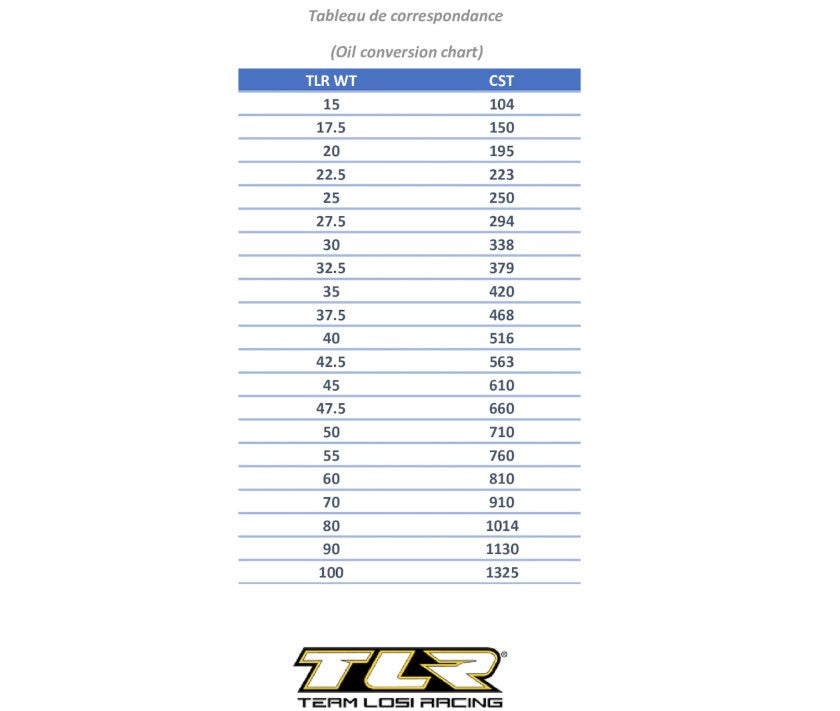 - Available in a large range of viscosities from the lightest 100CST (10WT) oil to the heaviest 700CST (57.5WT) Shock oil.