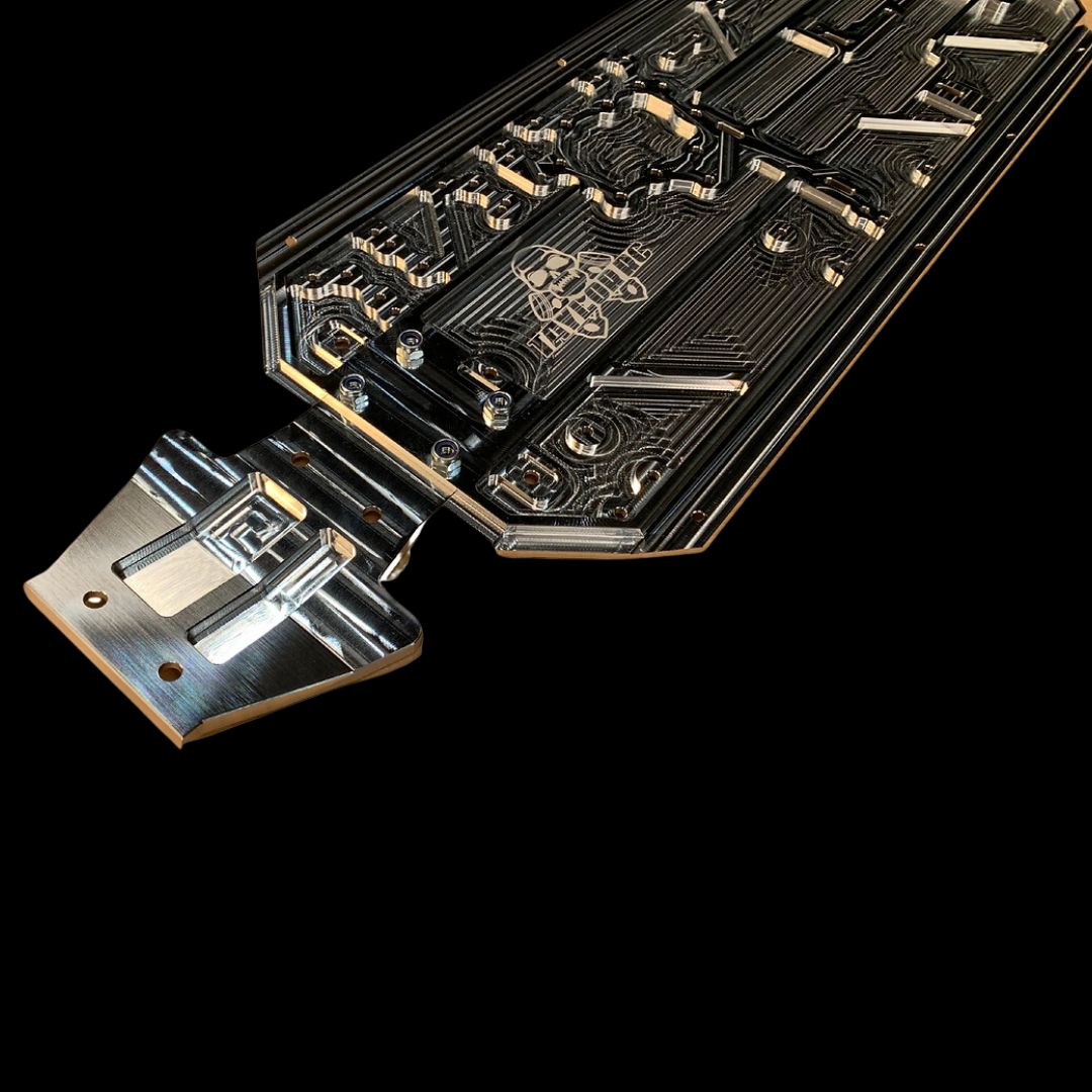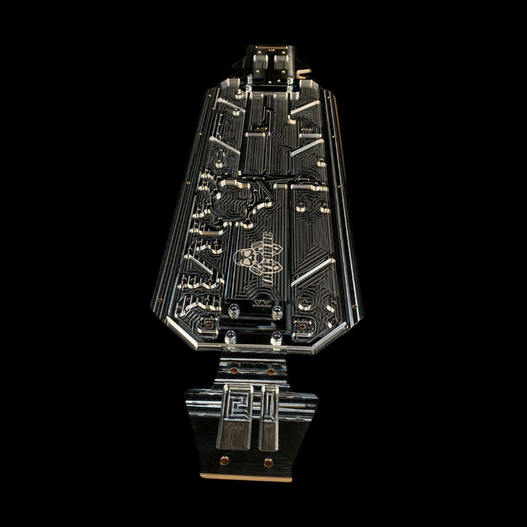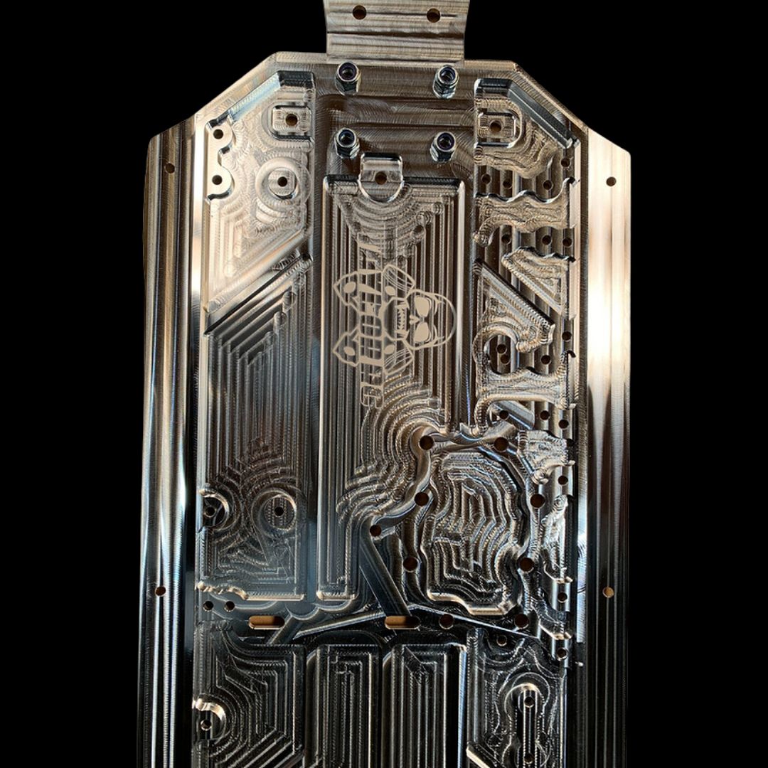 Finished off with our logo milled into the main plate under the front driveshaft.