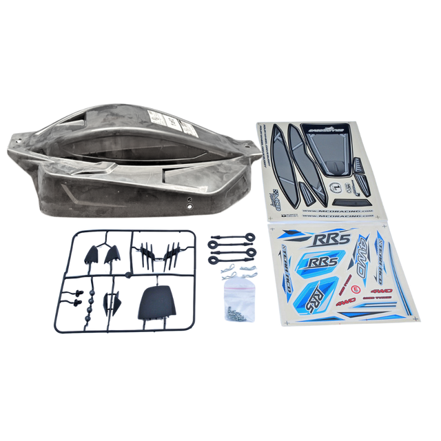 Genuine MCD RR5 CF Complete Body shell with overspray film, decals and molded accessories