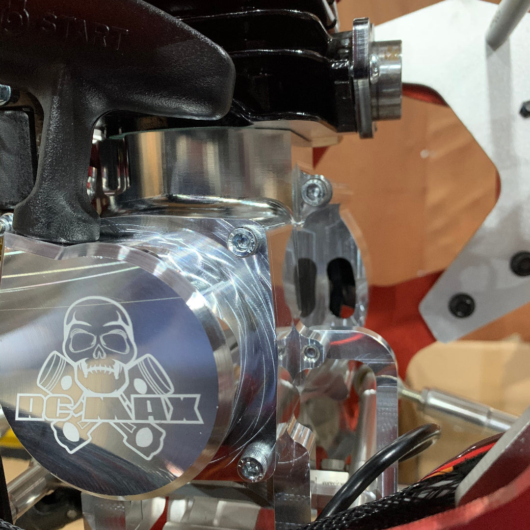 While the stock engine is out, we highly recommend cutting out a section of the side chassis plate next to the pull starter so that you can fit the engine (or even the stock engine) Without having to remove the pull starter or remove the side chassis plate itself. (see photo above with section cut out around the pull starter).