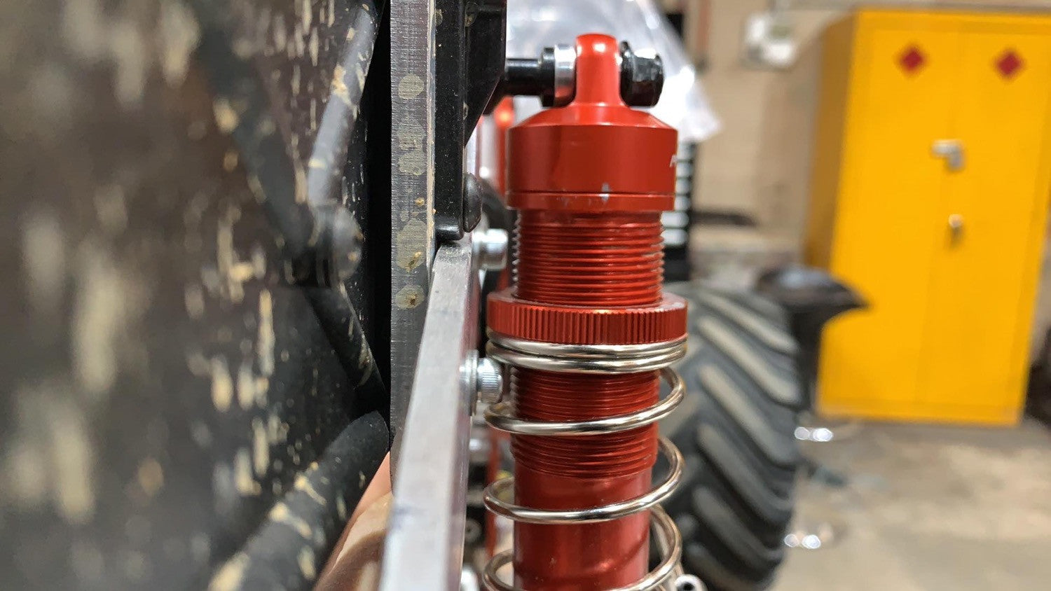 Developed during the testing of our new 80 Supreme engine package for the Raminator, we are pleased to release this HD wheelie bar for the Primal MT Featuring 5mm HD stainless support brackets, then two 1/8 scale RC Wheels joined together with a billet centre shaft, rotating on a Hard steel bolt for durability. Naturally the 1/8 wheels can be changed out to other brand/designs if you remove the bonding agent joining together for different designs!This wheelie bar was designed on our car running single shocks on each corner, if you run dual shocks, then the bracket fits on the inside of second set of shocks. Just leaves the shocks sitting at a very slight angle.