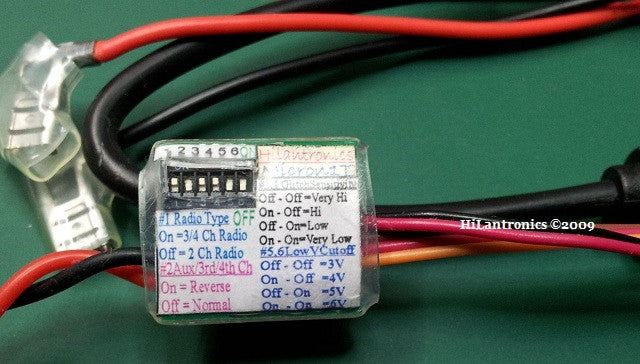 - Adjustable low battery voltage cutoff (3,4,5 or 6V cutoff)