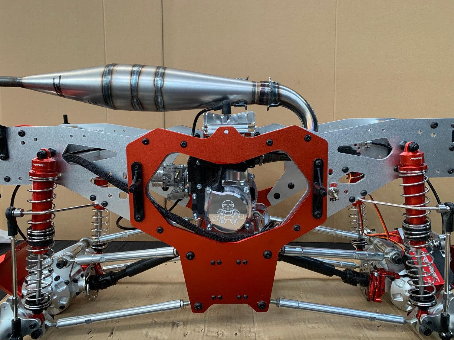 Fitment into the primal raminator is fairly straightforward. Once you have removed the stock engine and pipe, also remove the centre top cross over link bar between the two side chassis plates.