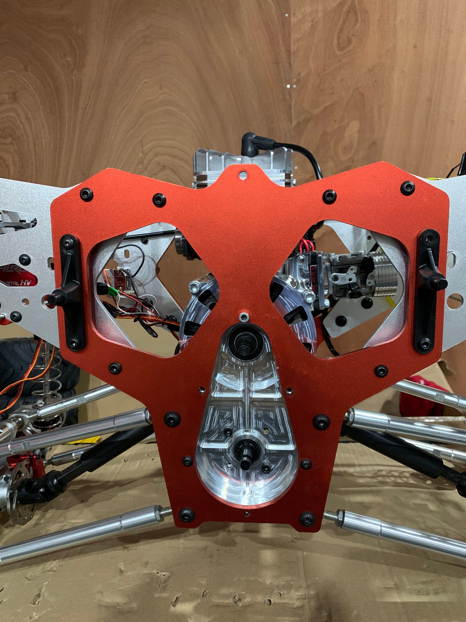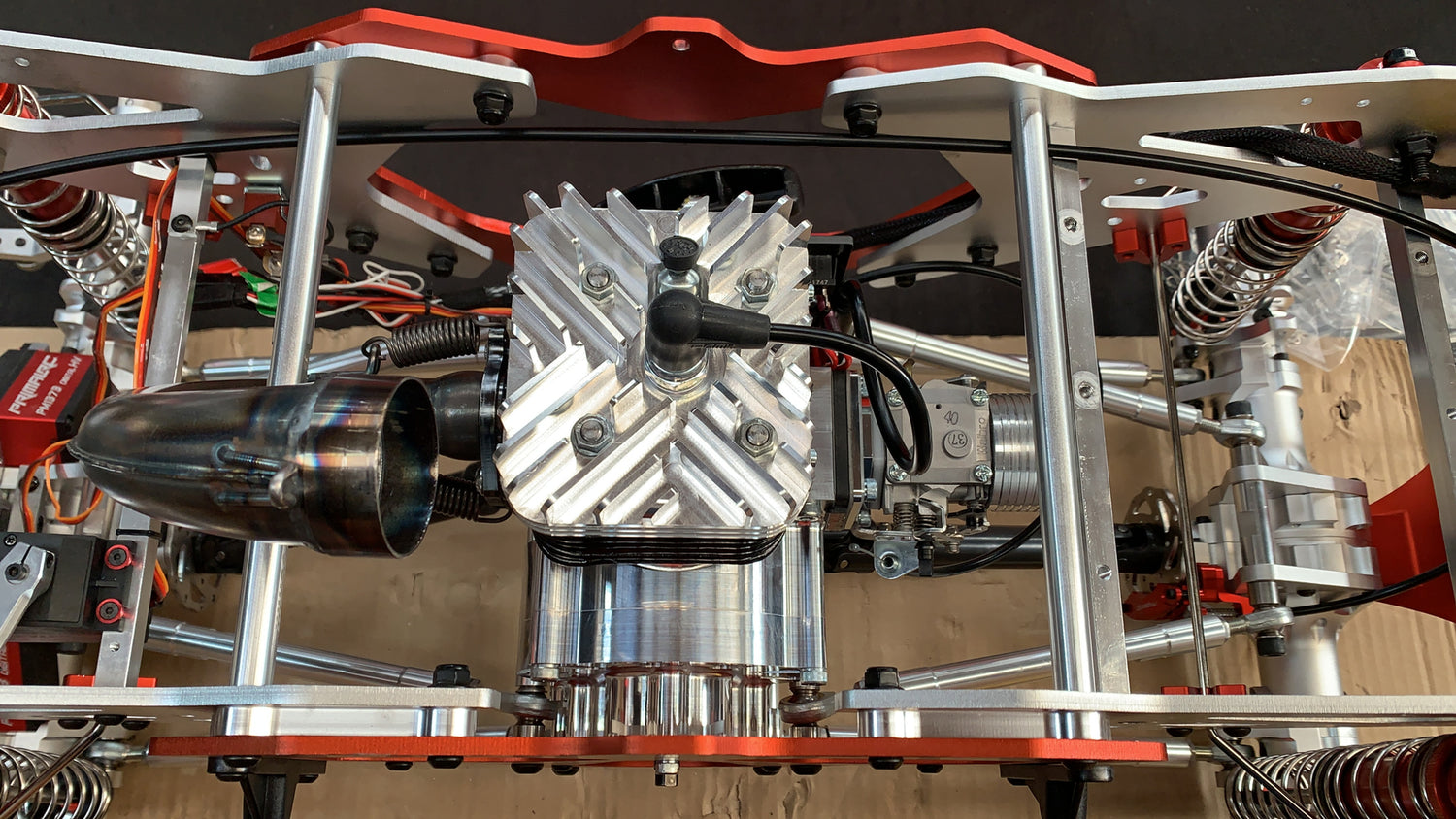 Fitment into the primal raminator is fairly straightforward. Once you have removed the stock engine and pipe, also remove the centre top cross over link bar between the two side chassis plates.