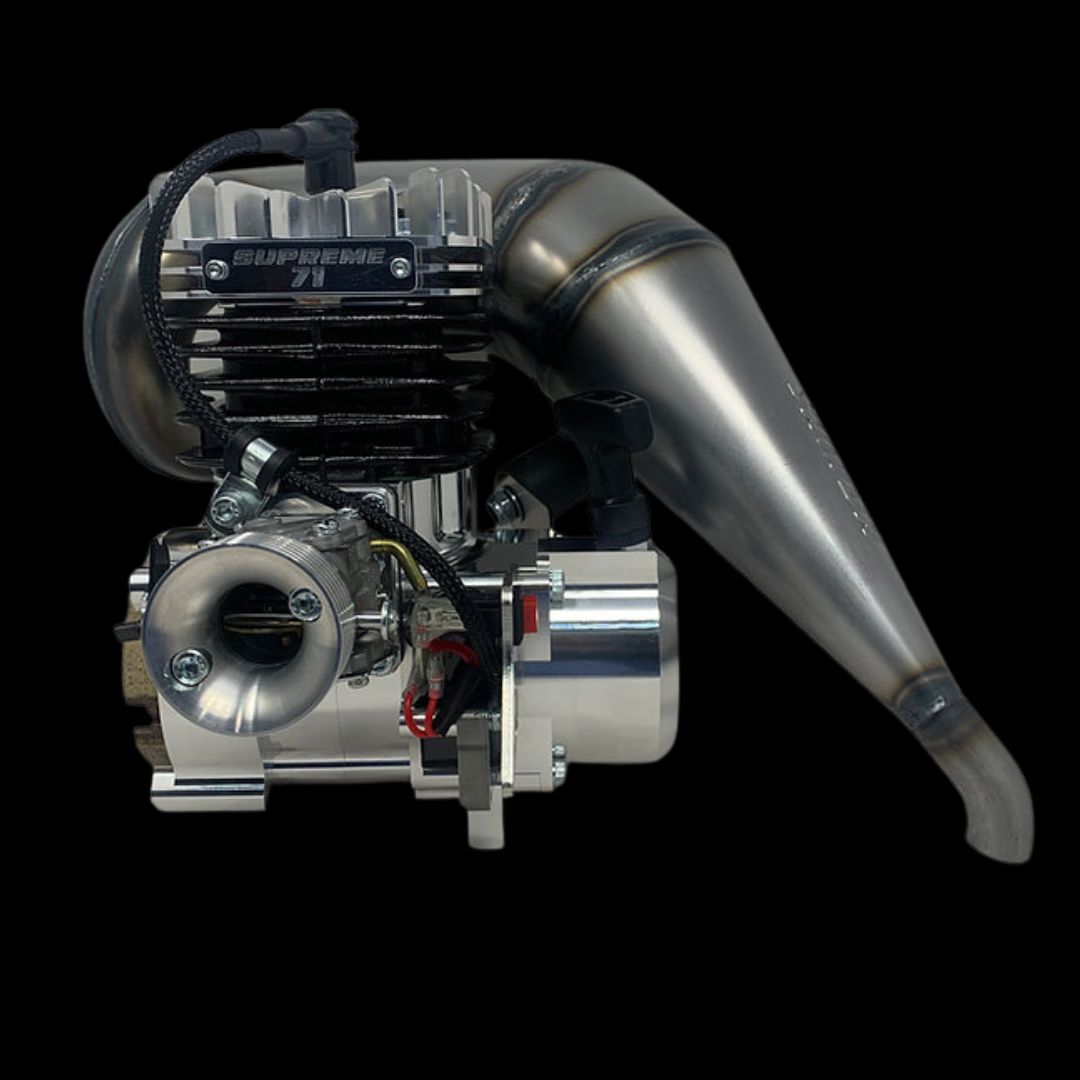 The 71cc is a fantastic balance between brutal torque and strong top end rpm. Despite the engine size, you can still expect to achieve 17500rpm with a good tune and a well bedded in engine.
