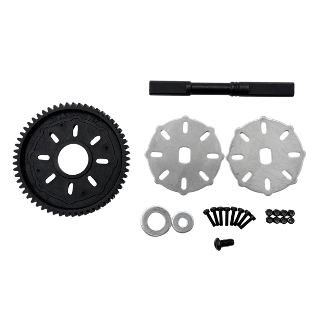 Continuing to develop the VESLA model has led to the newest update for the drivetrain! Representing a considerable decrease in rotating weight as well as simplicity makes this a nice performance upgrade! This is a Slipper Clutch eliminator set. Everything to convert your slipper clutch model to the direct drive is included. A new designed layshaft is smaller and lighter in weight than the original and tapped to hold the spur gear with a button head screw.