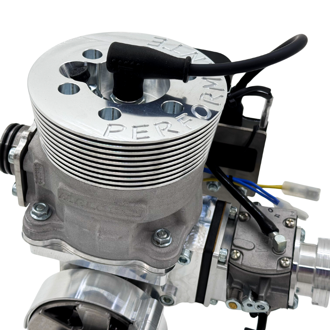 The ALX Super 71 Performante sets the standard in performance and power for 71cc RC engines. Designed and tuned in collaboration with Malossi Factory Racing Division to give the best performance and RPM possible from the 47.6mm MHR Flanged cylinder. With these premium components the engine is capable of handling high stress and temperatures. Note that the Malossi cylinders are supplied in the standard silver finish. Customisation to a black cylinder is available upon request for an added cost.