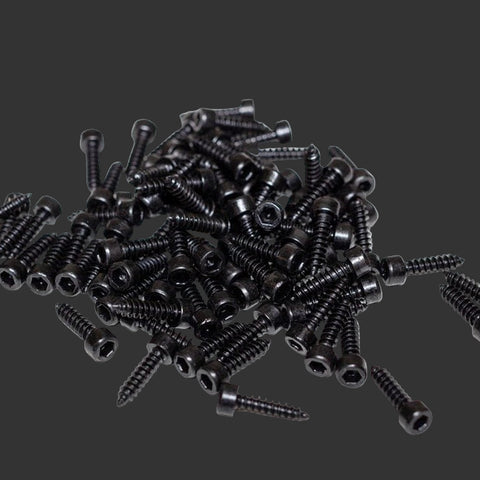 Set of 84 coarse thread screws designed to bite into plastic wheels with superior grip. Compatible with all plastic wheels for the Losi 5IVE, Kraken VEKTA, and HPI Baja 2.5mm metric Allen head screws.