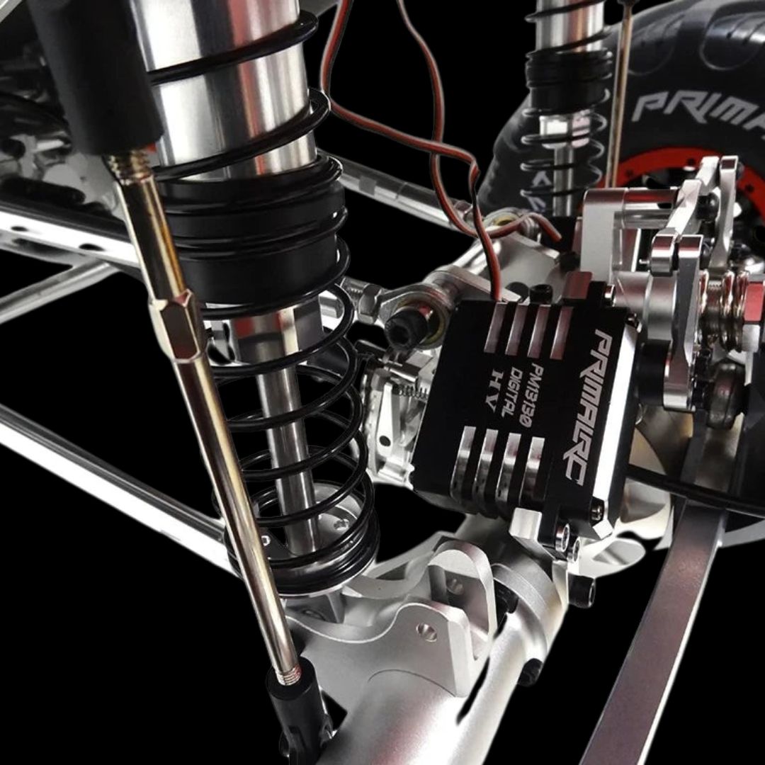 - (2) Upgraded 130KG HV All metal cased brushless Steering Servos.