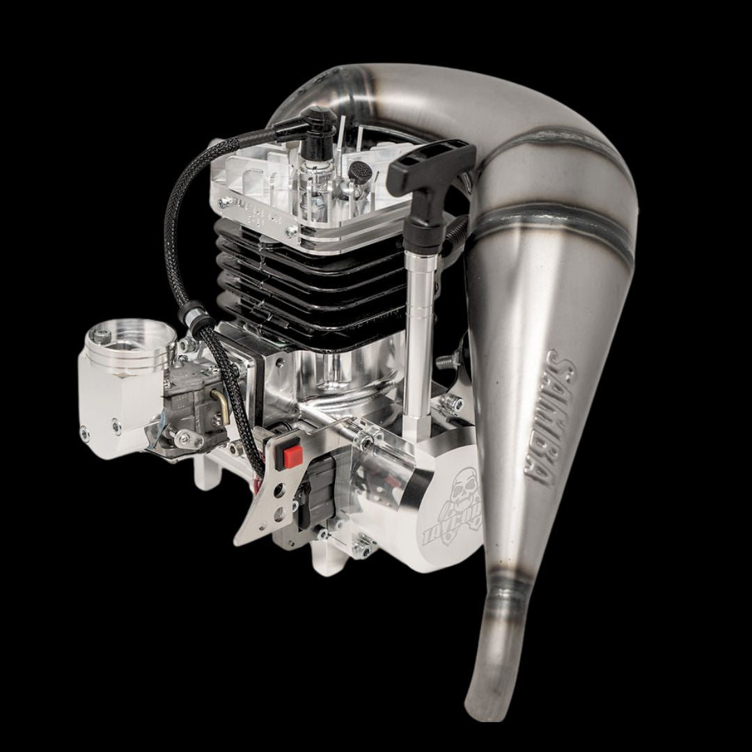 This New 80cc monster engine has been made possible by the Game Changing V3 Clutch system and Sprung Loaded Pull starter! However please note, this is only for the most experienced users, the compression is enormous! Consistent starting requires skill and repsect for the beast with no half hearted attempts.Incredibly despite the size of the brute, the whole package including exhaust is only 4.54kg. Far lighter than any similar competitors!