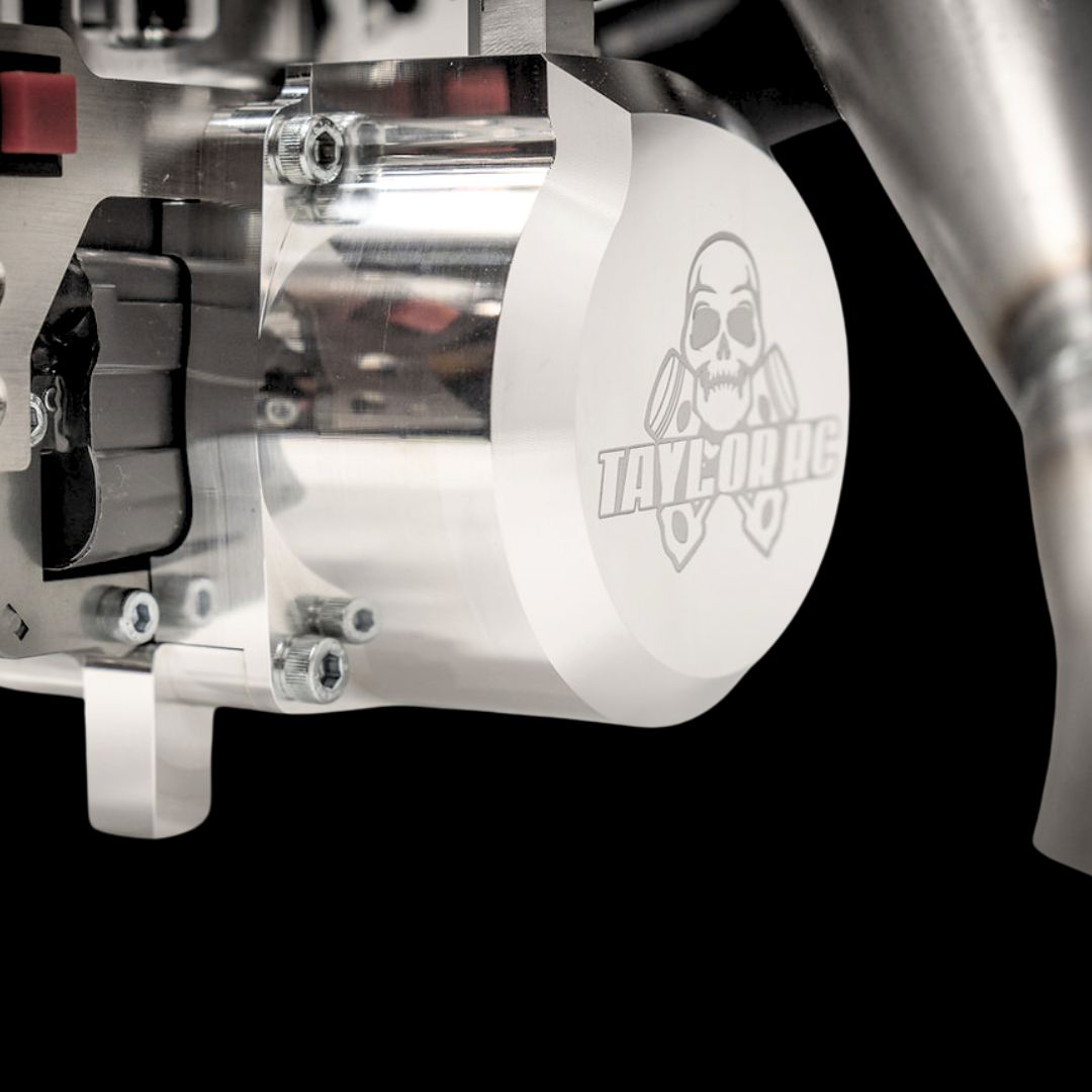 - TAYLOR V3 Clutch system with sintered steel shoes, dual control springs, forced air cooling system, vented Blackbone steel clutch bell and a billet clutch tower.